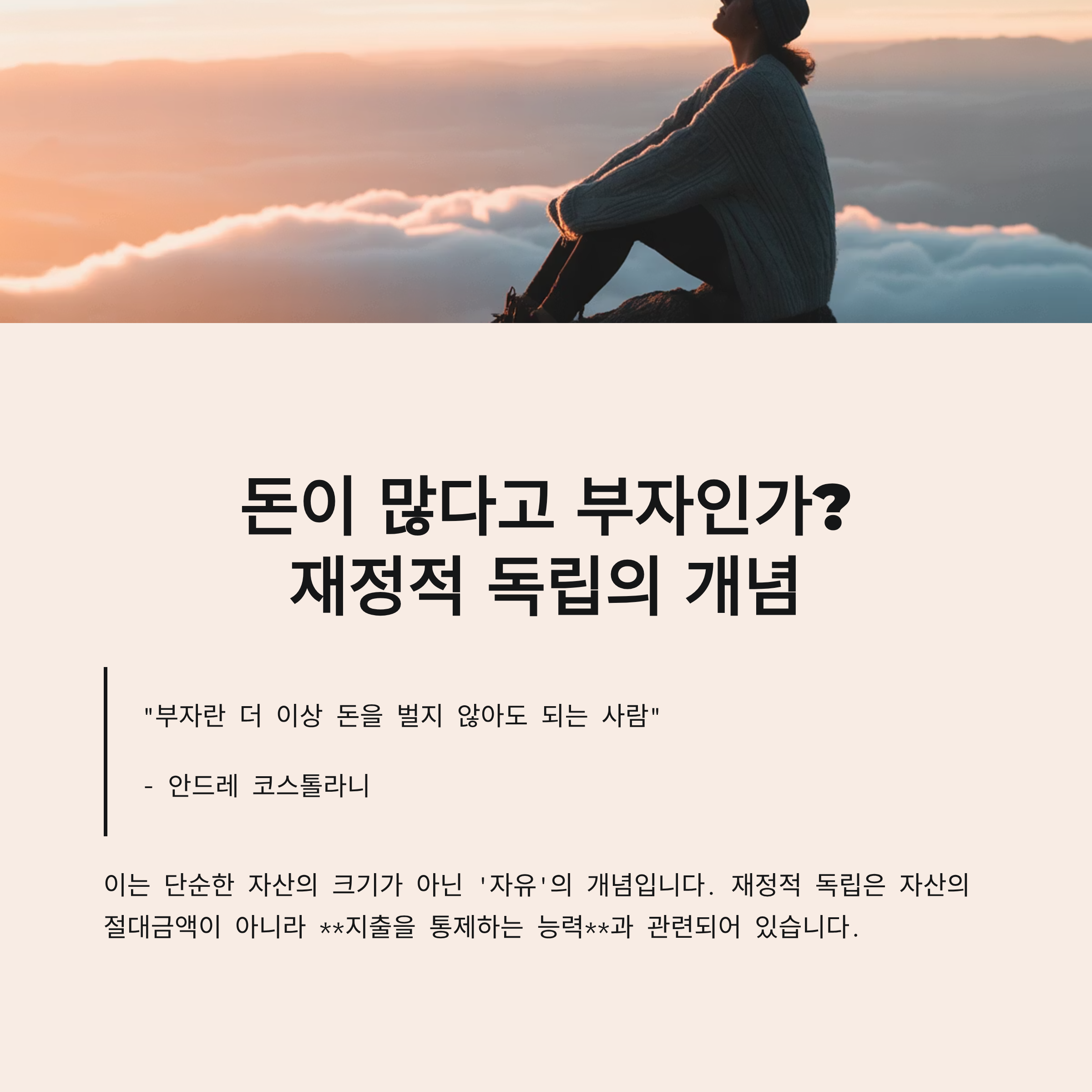 | 재정 독립의 조건 | 자산보다 지출 통제 능력 |